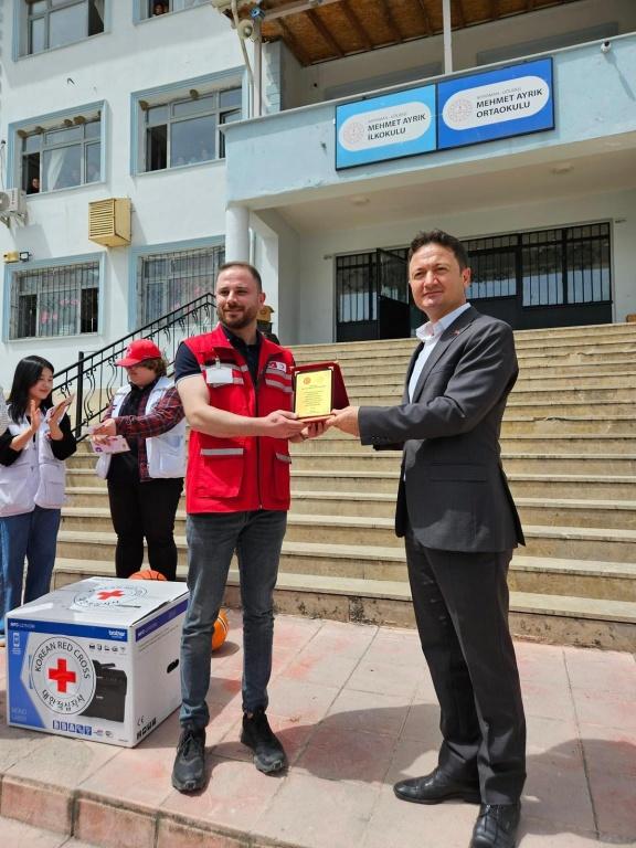 İhtiyaç anında dayanışmanın, ızdırap anında şefkatin, farklılıklar karşısında hoşgörünün ve doğal afetlerin en kızgın anında merhametin ve el uzatmanın simgesidir Türk Kızılay. Bu manada Guney Kore Kizilhac<KNRC> ile beraber deprem sonrasinda okulumuza katkida bulunan İki kurumumuz tekrar okulumuzu ziyaret ettiler. Kurumum adina kendilerine plaket takdim ederken, Öğrencilerimiz de mektup yazarak teşekkür ettiler. Guney Kore& Türkiye gonul bagi her zaman var olacaktir. Her iki kuruma okulumuz adına teşekkürlerimizi sunarız.