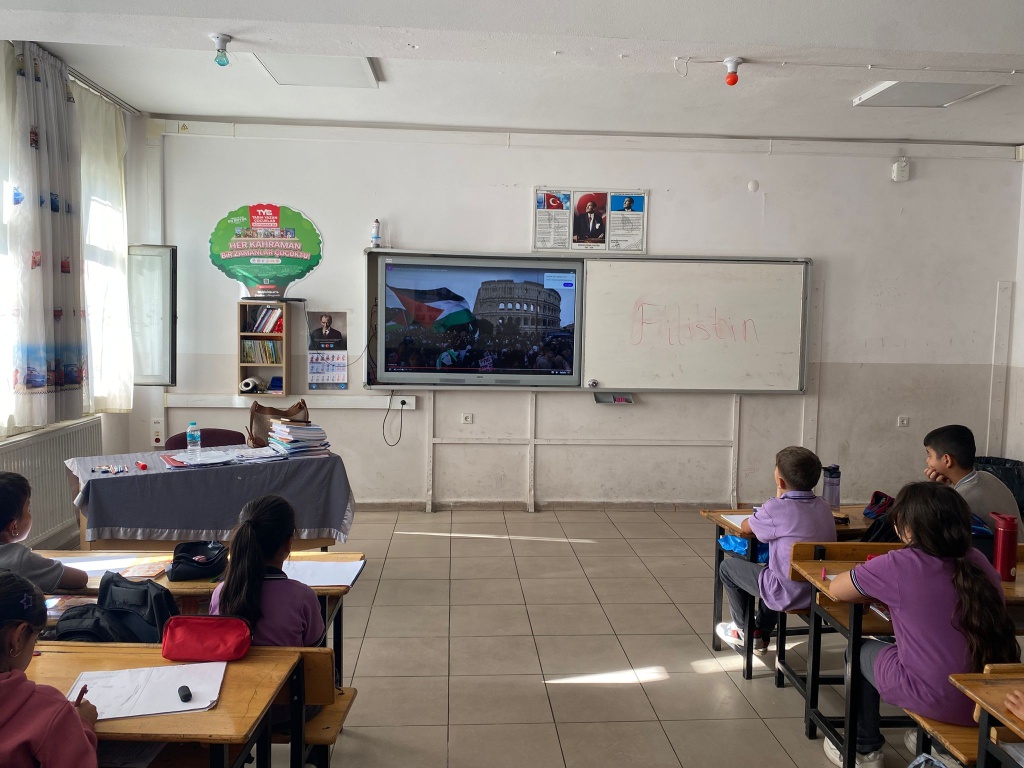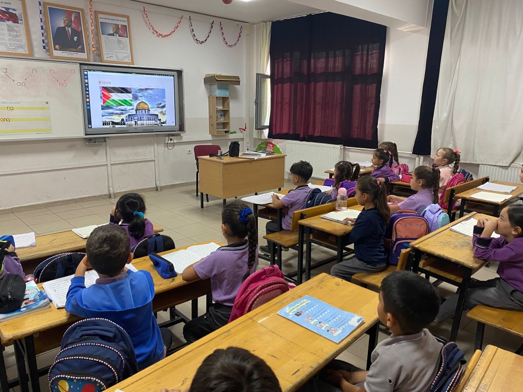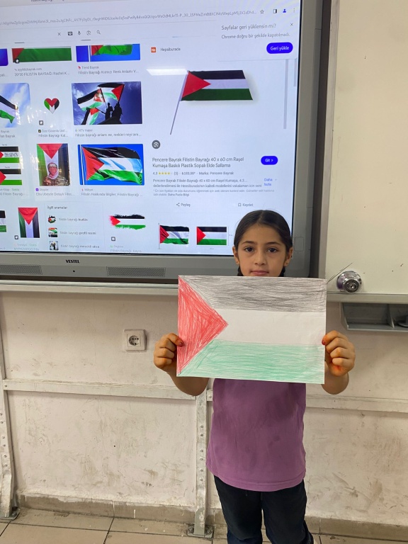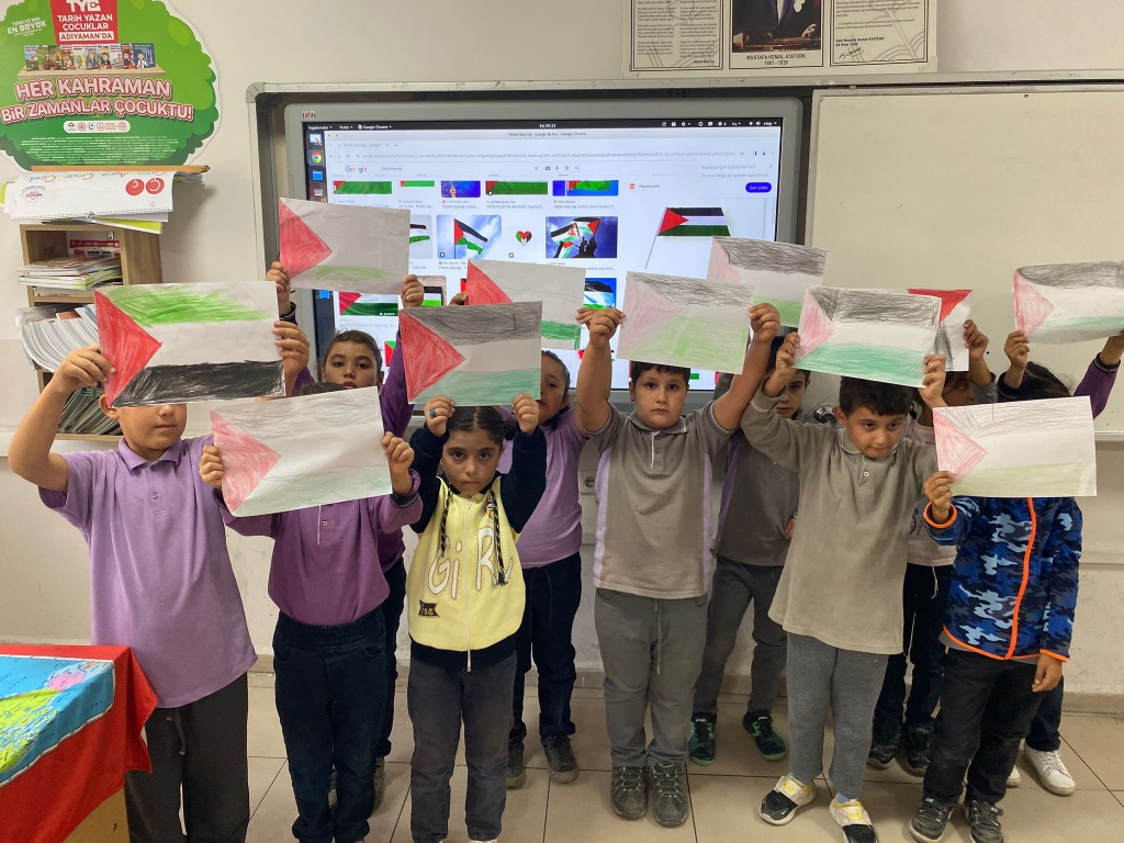 Bugün okuldaki ilk dersimizde “Filistin Farkındalık Etkinliği” gerçekleştirdik. Bakanlığımızın ilgili yazısı doğrultusunda ve Türkiye Yüzyılı Maarif Modeli çerçevesinde özellikle sorumluluk ve duyarlılık bilincini geliştirmek adına düzenlenen etkinlikte Filistin temalı videolar izlenip gerekli bilgilendirici konuşmalar yapıldı. Boyama ve resim çalışmalarıyla öğrencilerin konuyu daha da içselleştirmesi sağlanırken ders sonunda öğrenciler yaptığı resimlerle okulun önünde toplu fotoğraf çekildi. Emeği geçen tüm öğretmen ve öğrencilerimize teşekkür ederiz.